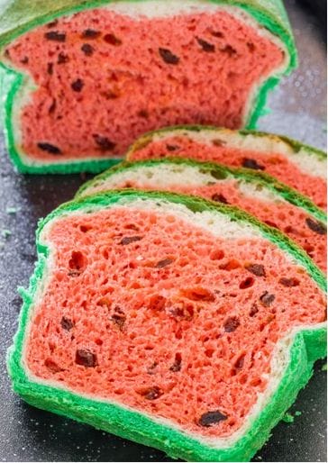 When I came across this bread I was amazed and thought it a bit of fun this watermelon lookalike raisin bread.