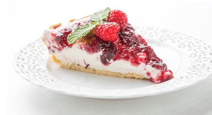 A really amazing cream pie that is so easy to make because the pie crust is pre brought or you could make one if you prefer, the filling is a creamy tangy and sweet all in one which is topped with holiday-spiced whole cranberry sauce, which makes this pie a really wonderful bake