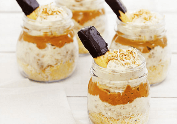 I am a fan of the banoffee pie with its creamy layers so this dessert is right up my street as I think they look so sweet in the glass pots and great dinner party dessert I think , as it will certainly impress your guests