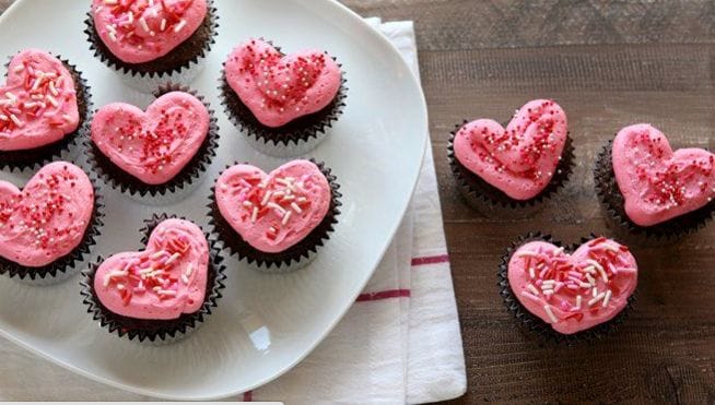 Show your loved ones how much you care by whipping up a batch of these adorable heart-shaped cupcakes.