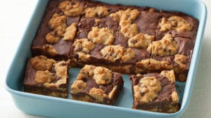 These indulgent bars are where ooey-gooey meets chewy–with the tastiest results! Betty Crocker™ chocolate chip cookie mix (with oats added for a perfectly chewy texture) gets dolloped with fudgy chocolate and caramel, and baked into a classic bar that no one will be able to resist.
