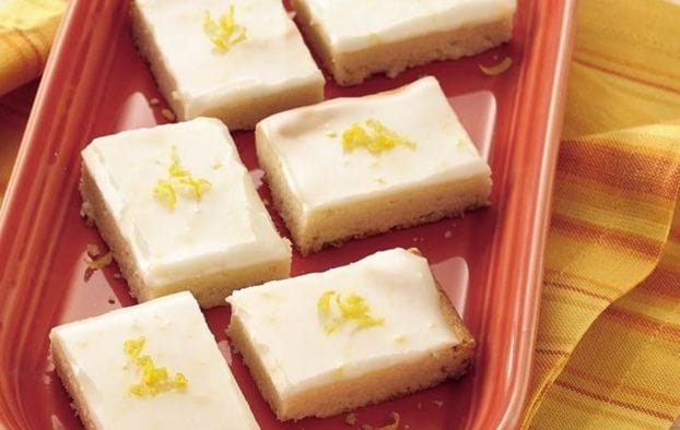 Top off these sunny citrus bars with a sprinkle of freshly grated lemon peel.