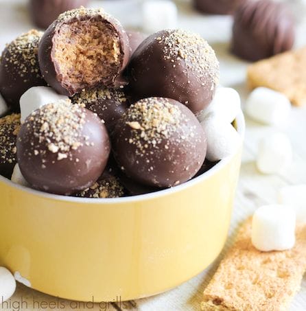 GET THE RECIPE –> http://www.highheelsandgrills.com/smores-truffles/