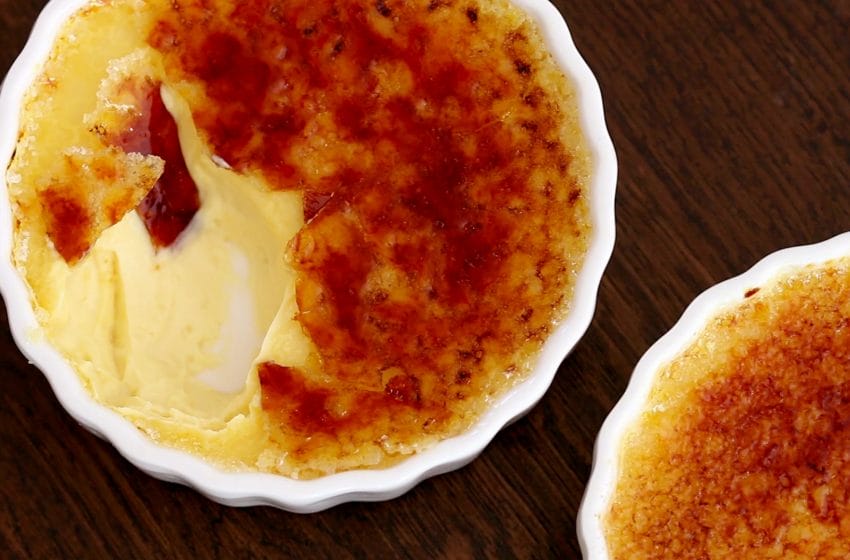 - Before serving spread 1 tbsp (15g) sugar on top of each ramekin. Use a torch to melt the sugar and create a crispy crust.