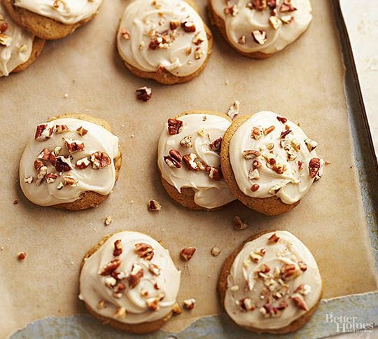 These chewy cookies give you all the flavor of gooey caramel apples but without the mess. Freeze them, let them thaw, then top them with sweet caramel icing and toasted nuts.