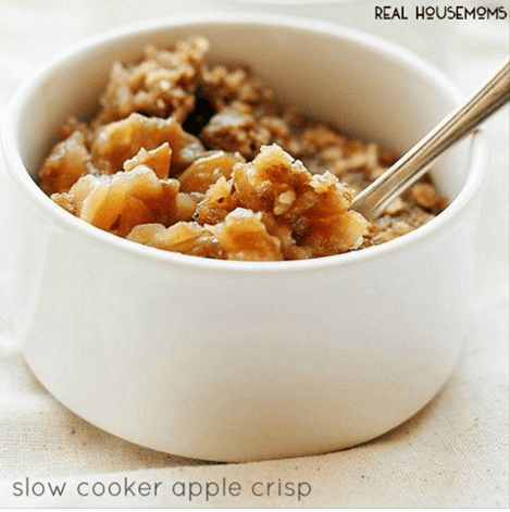 I love when the Crock Pot makes dessert! SLOW COOKER APPLE CRISP will make you fall in love too!RECIPE–>http://realhousemoms.com/slow-cooker-apple-crisp/