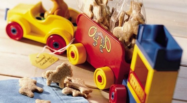 Fill a toy circus-animal train car with bags of cookies for a circus-themed birthday party.