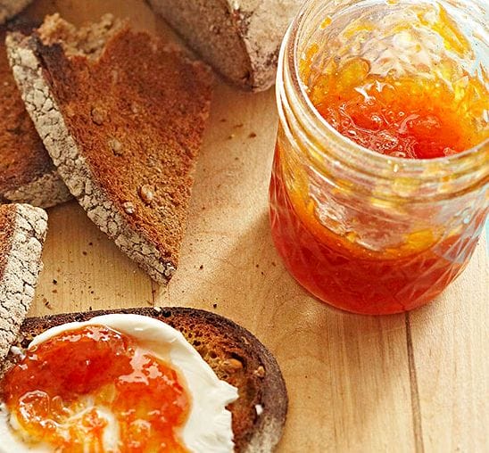 With hints of sweet pineapple and flaked coconut, this decadent carrot jam tastes like a warm, tropical treat atop crusty bread and a dab of cream cheese.