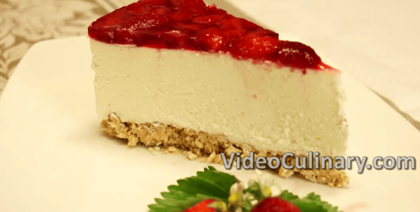 Original Recipe here:http://videoculinary.com/recipe/no-bake-ricotta-strawberry-cheesecake/