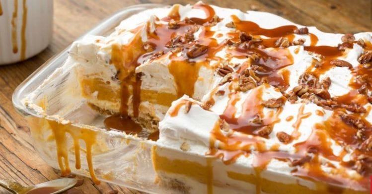 Well how delicious does this dessert look? a really creamy yummy pumpkin cheesecake lasagne dessert that really is a great crowd pleasing dessert to make