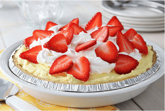 I really love the look of this pie with the lemon and strawberry aspect , what makes it easy is you can pre buy the crust bottom which is amazing of course you could make one also