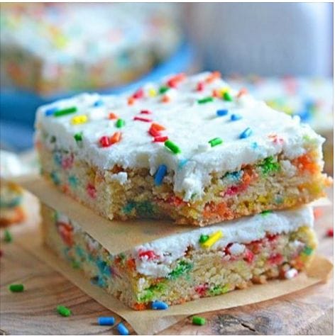 Sprinkles make the world a happier place, and it doesn’t get much happier than these **Cake Batter Blondie Bars**!Get the recipe: http://kitchenmeetsgirl.com/cake-batter-blondie-bars/