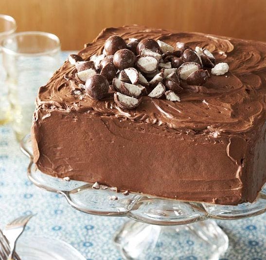 Everyone’s favorite soda-fountain treat adds a delectable twist to rich chocolate cake. Layer on our creamy Chocolate Malt Frosting, then sprinkle with malted milk ball pieces and serve.