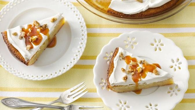 This is called Impossible Pie, because you pour the mixture into the pie dish and it magically separates into 3 layers once baked. Easy to make and delicious!